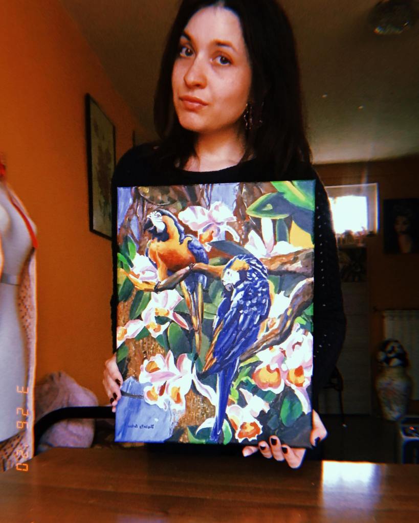 Caraibi -donna con pappagallo-